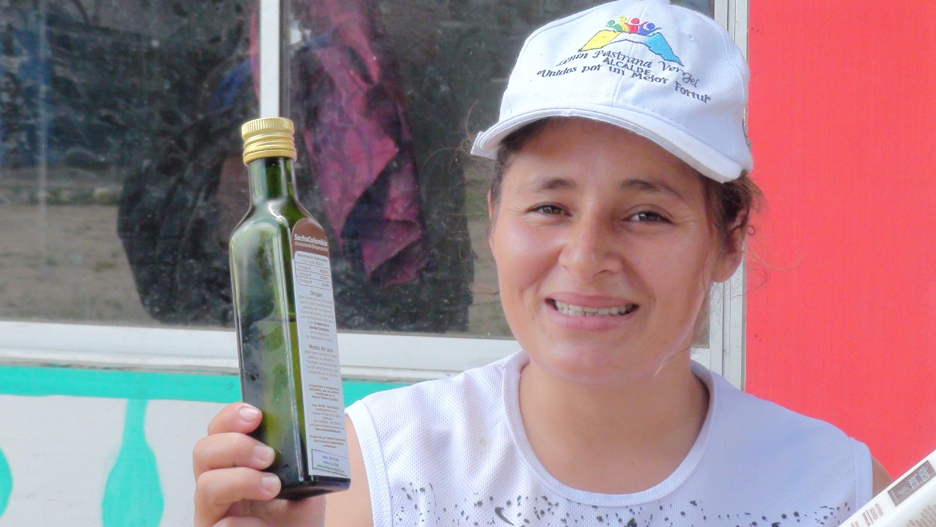 "This is an oil that has received awards and certificates as the best oil in the world for its rich in Omega 3, 6 and 9 and has positive effects for cardiovascular and brain functions” says Wladislaw, a former FARC combatant who is applying his empirical medicine knowledge when he talks about the benefits of Sacha Inchi oil.