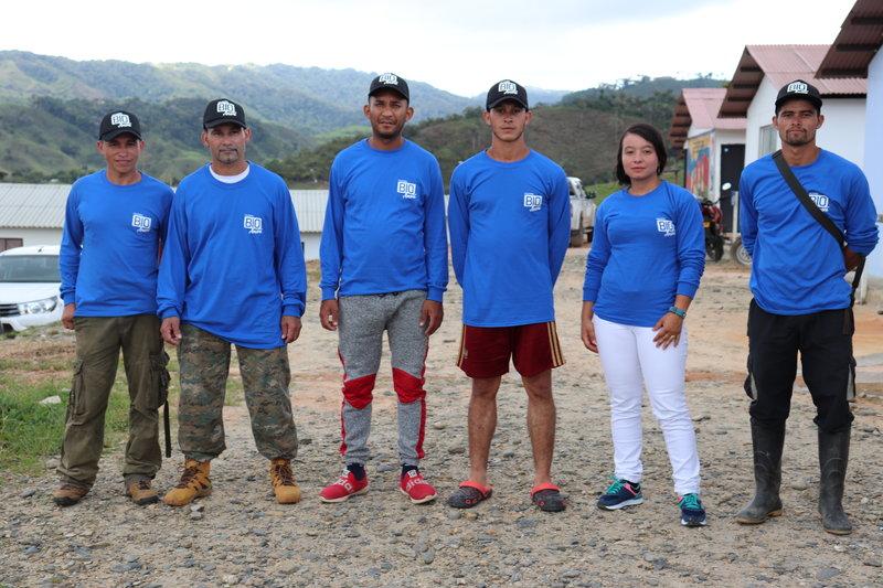 Six of the Farc ex-combatants who participate in Bio Anorí as research assistants, guides and coinvestigators. Photo: Elizabeth Yarce