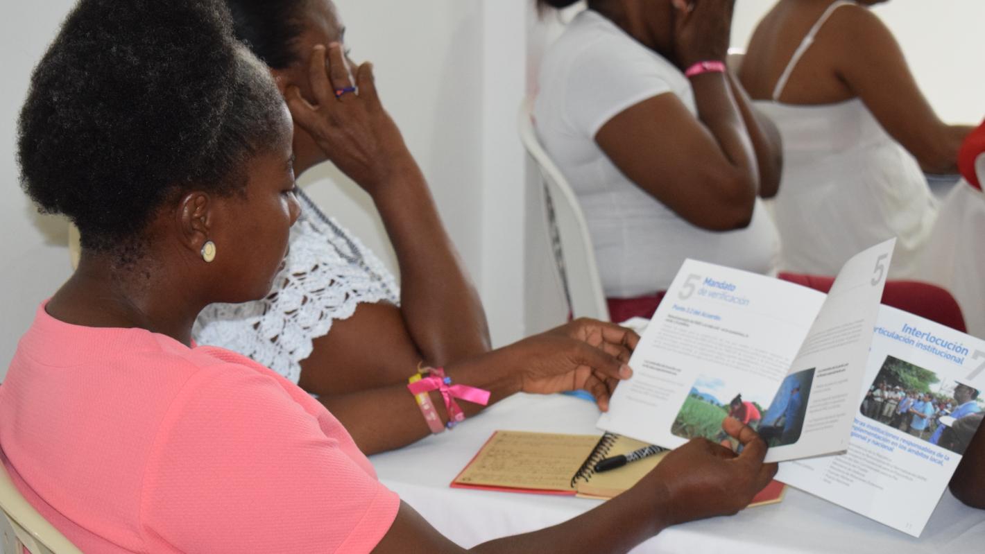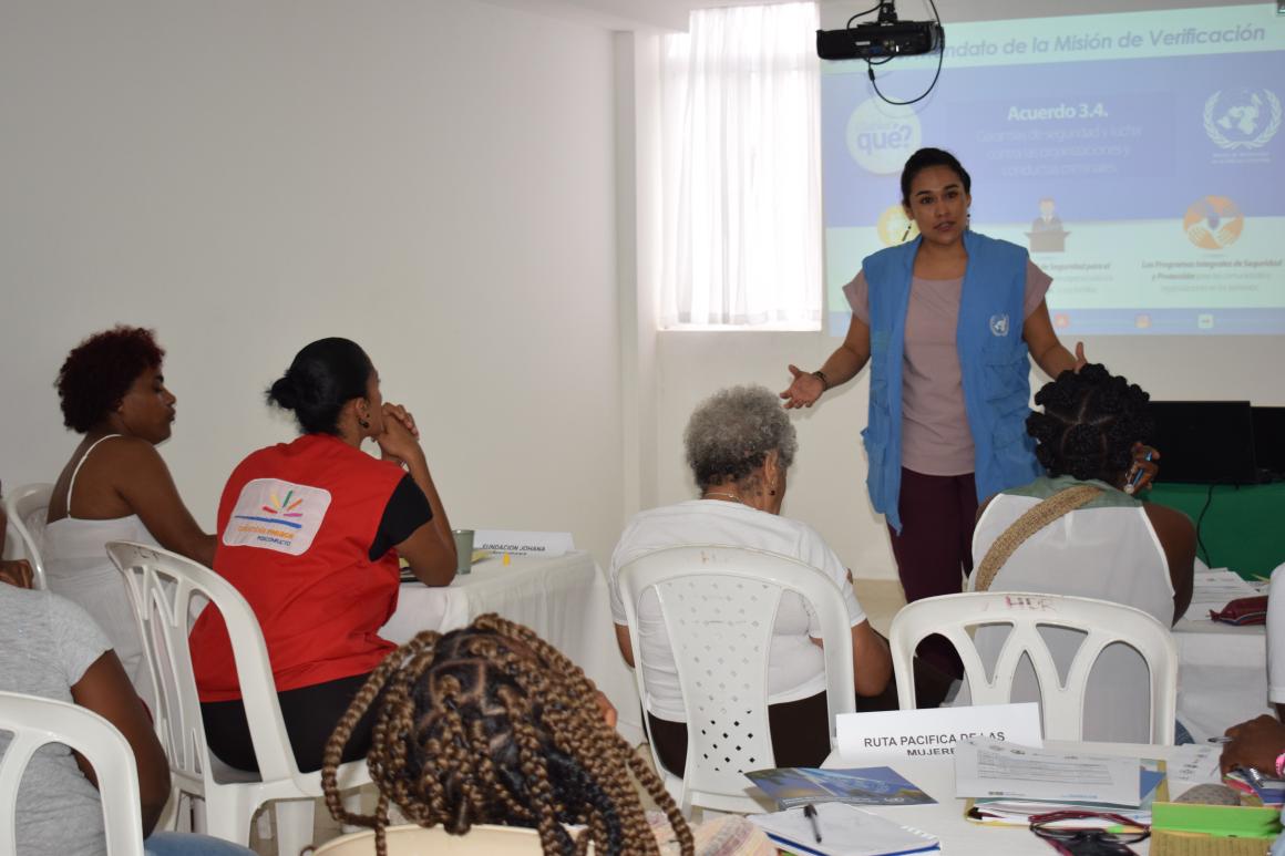 The Quibdó Regional Office team was in a dialogue with the representatives of women's organizations of Chocó Department that make up the "Women, Peace and Security Table". In the event, the UN Mission presented the final results of the Laying-Down of Arms from FARC-EP and the role the Mission now plays in the verification of the Peace Agreement implementation, specifically regarding section 3.2 – Social, Economic and Political Reintegration; and section 3.4 - Security Guarantees for ex-combatants and for the communities that have suffered most from the conflict.
