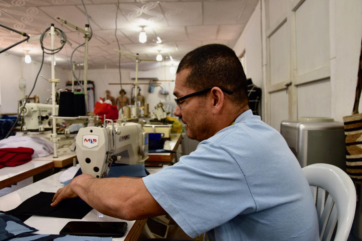 Initially, before SENA’s support, Diosenel Criado gave sewing classes in the refurbished former warehouse. He is an expert tailor who sewed uniforms for the guerrillas for 16 years. According to him, in the beginning, it was hard to make former female combatants love sewing. "They are used to working with a machete in the jungle, or military activity which is very different from this and that is why it was hard for them to learn and get into it. Twenty of them lost interest".