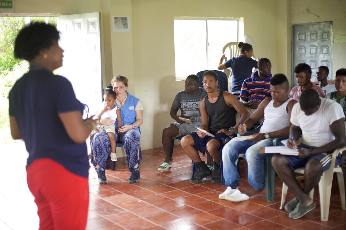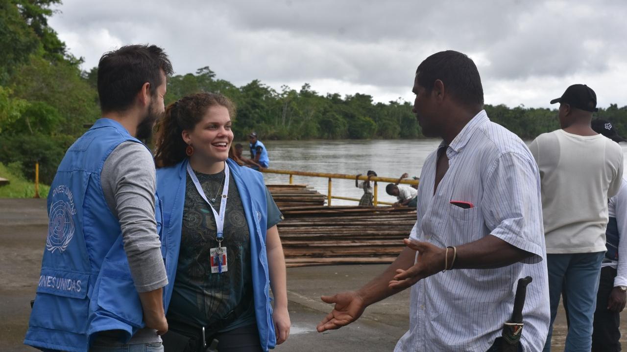 Ornella likes the idea of working directly with people. She explains while waiting for a boat at the Atrato river shore, to take her and the team to the community of Vigía del Fuerte, Antioquia. “The first time I worked in Colombia, I was in Villa Rica, a municipality in northern Cauca. I worked with a small organization during the Peace Agreement negotiations. It was a wonderful experience. Now, I am part of this great organization, the United Nations, which gives us a great support to influence high levels government officials, institutions and non-governmental organizations, on matters that impact the quality of life of ex-combatants, the enjoyment of their economic rights, social and cultural, in conditions of equality, human dignity, and non-discrimination.”