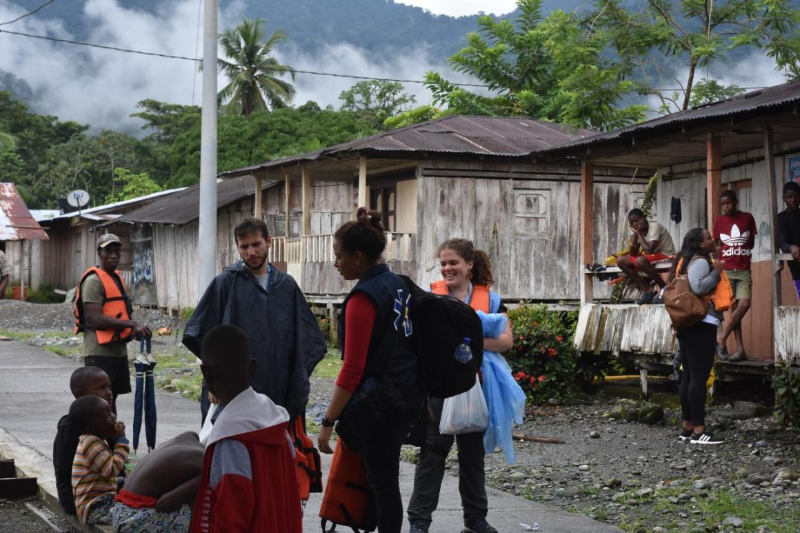During the last weeks, it hasn't stopped raining over the Atrato river. The water, which has already reached the streets of Vigía del Fuerte, has increased more than a meter, flooding some homes on the riverbank. The mobile team traveled from Quibdó, in the helicopter to Vigía del Fuerte. Later, the team met with the municipal prosecutor of Vigía and people in the process of reintegration. The following day, the group embarked on Vegaez.