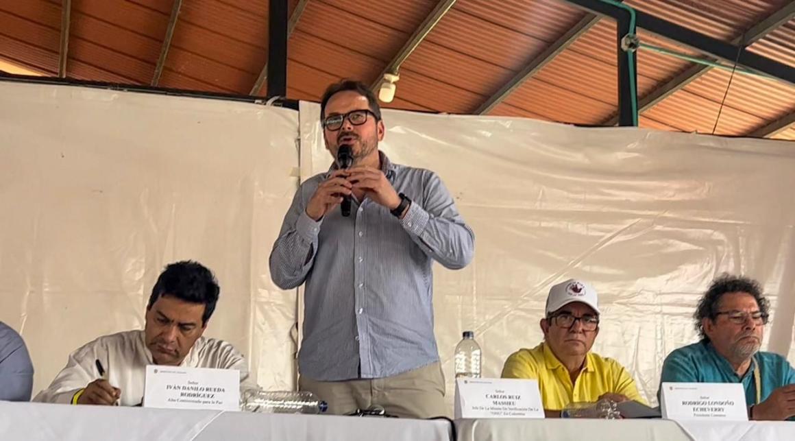 On 29 March, in the former Territorial Space for Training and Reincorporation - TATR, in Mesetas, department of Meta, the Special Representative of the Secretary-General and head of the UN Verification Mission in Colombia, Carlos Ruiz Massieu, accompanied the installation of the Unified Command Post, together with President Gustavo Petro, government representatives and former combatants, meeting where institutional responses were agreed upon regarding the security situation of close to 200 former combatants and their families, following the threat they received in mid-March demanding that they leave the TATR.