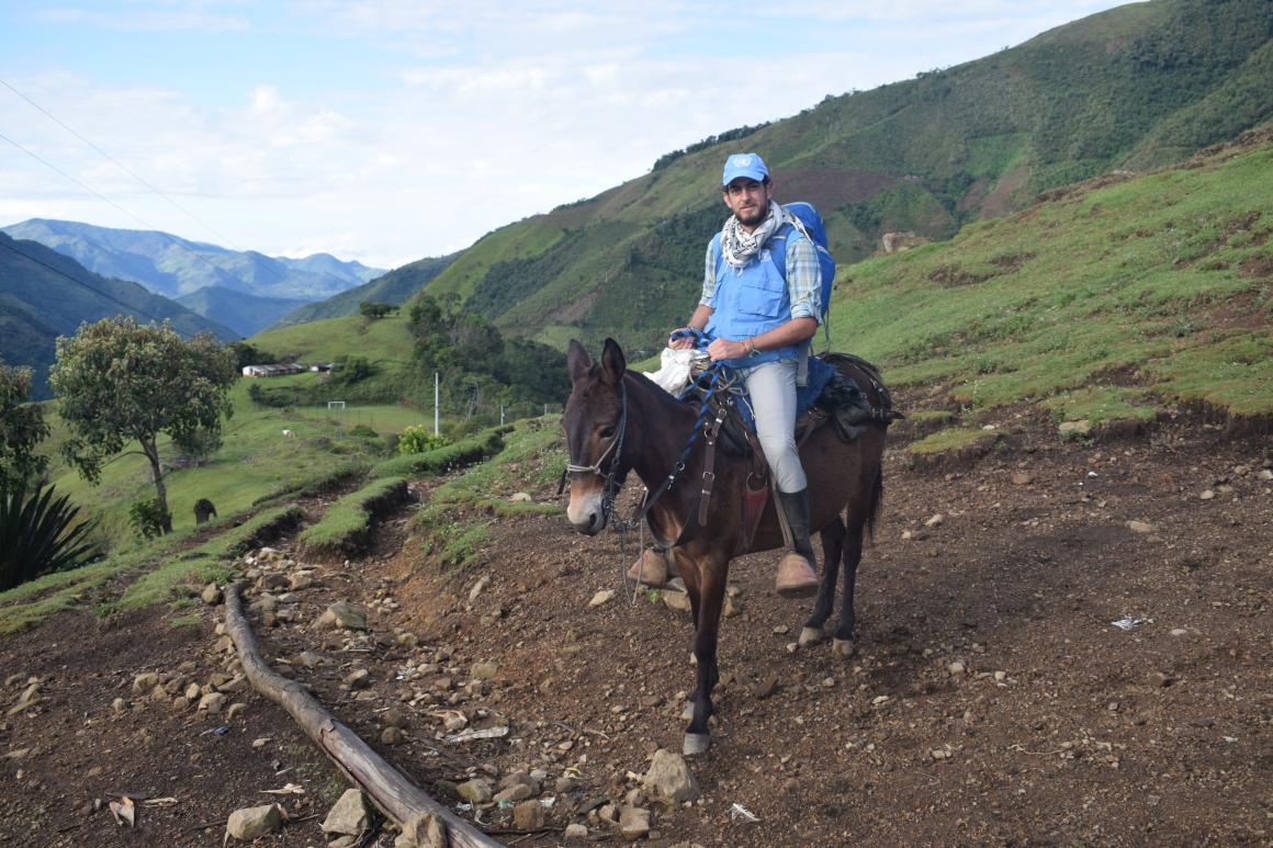 “After a car ride, there is a two-hour ride on a donkey on a well-defined path. As time goes by, a beautiful landscape appeared before our eyes. Former combatants that came to pick us up indicated the location of each of their crops. In these slopes, there is a one-hour distance from one home of a former combatant to the next. The journey can be made during the day, the clouds cover the valleys below, and at sunset, they rise to the town. At sunrise, you can see Paramillo,” said Giovanni Ferma, field officer of the UN Verification Mission in Colombia.