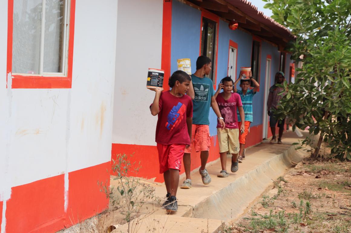 This enthusiasm inspired the realization of a day of muralism with the theme of peace and environment. Boys and girls of the local community as well as the children and relatives of the former combatants took their paintbrushes and drew the contrast between a polluted river and nature full of life. To them, the hands of community leaders, police officers and soldiers were joined.