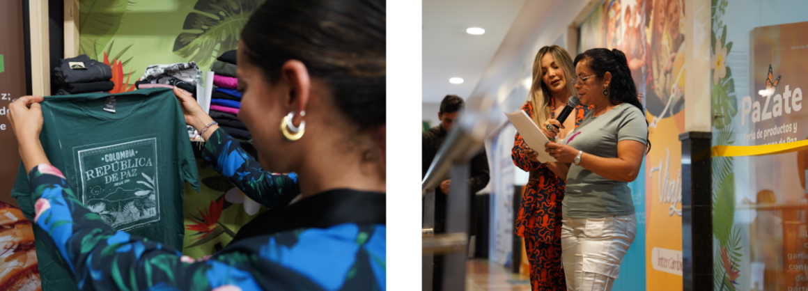 “Today, as a peace signatory and leader of women’s entrepreneurship, I celebrate this opportunity because they are undoubtedly responding to our greatest difficulty as entrepreneurs —the marketing of our products,” says Patricia Piedrahita, a person in the process of reintegration and a member of the Soberanas por la Paz (Sovereigns for Peace) Organization, that offers fashion products with empowering messages that make visible gender struggles.