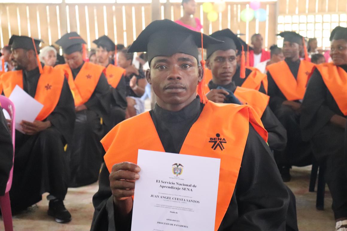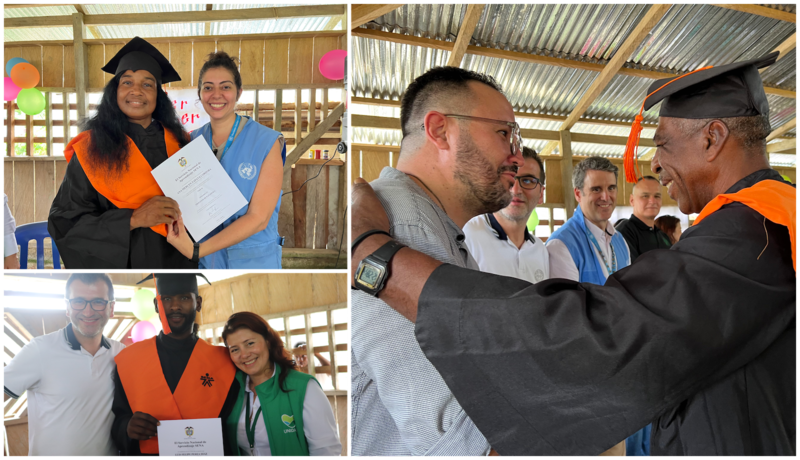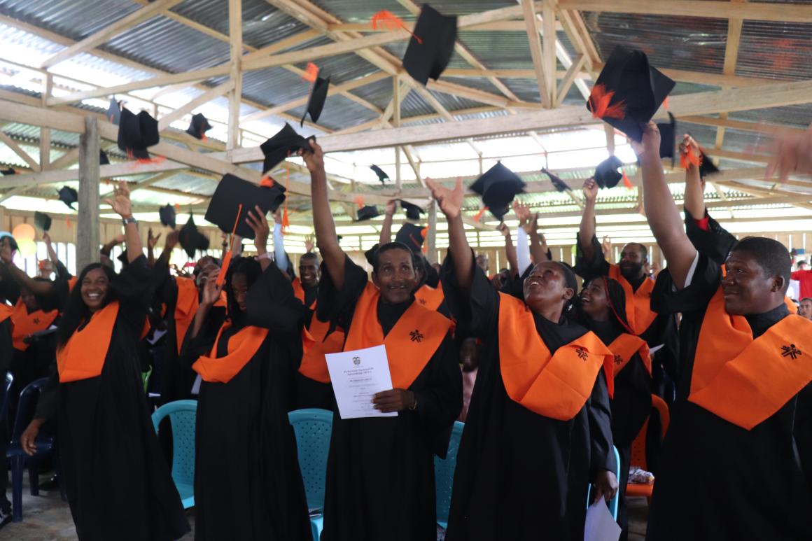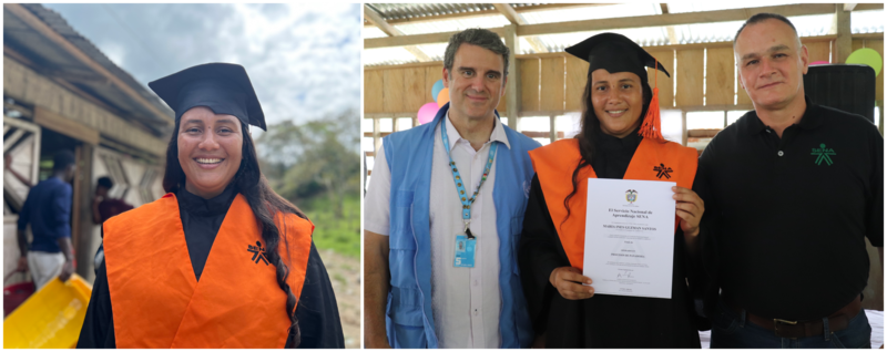 “If it weren’t for the Peace Agreement, the world wouldn’t know that Mandé exists. That's why we are giving it our all into entrepreneurship and education in this community." These are the words of Juan Ángel Cuesta—peace signatory and leader of Coomandé cooperative, which brings together people in reincorporation in this region—after receiving his fifth diploma from Servicio Nacional de Aprendizaje (National Training Service) (SENA).