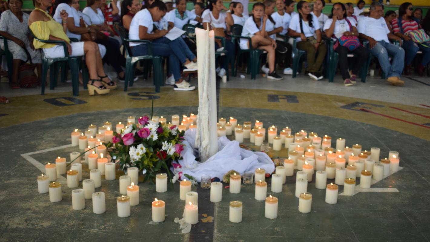 Early in the morning, Remedios was painted in white balloons and the houses, buildings and police station facades were adorned for the occasion. Inside the coliseum, victims and victimisers lit candles to symbolize “the light of hope”.