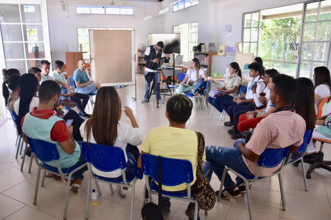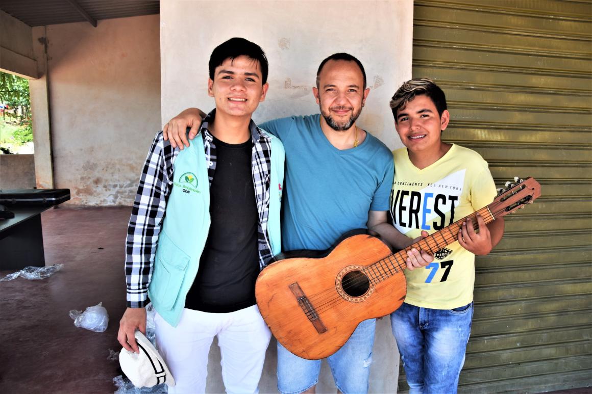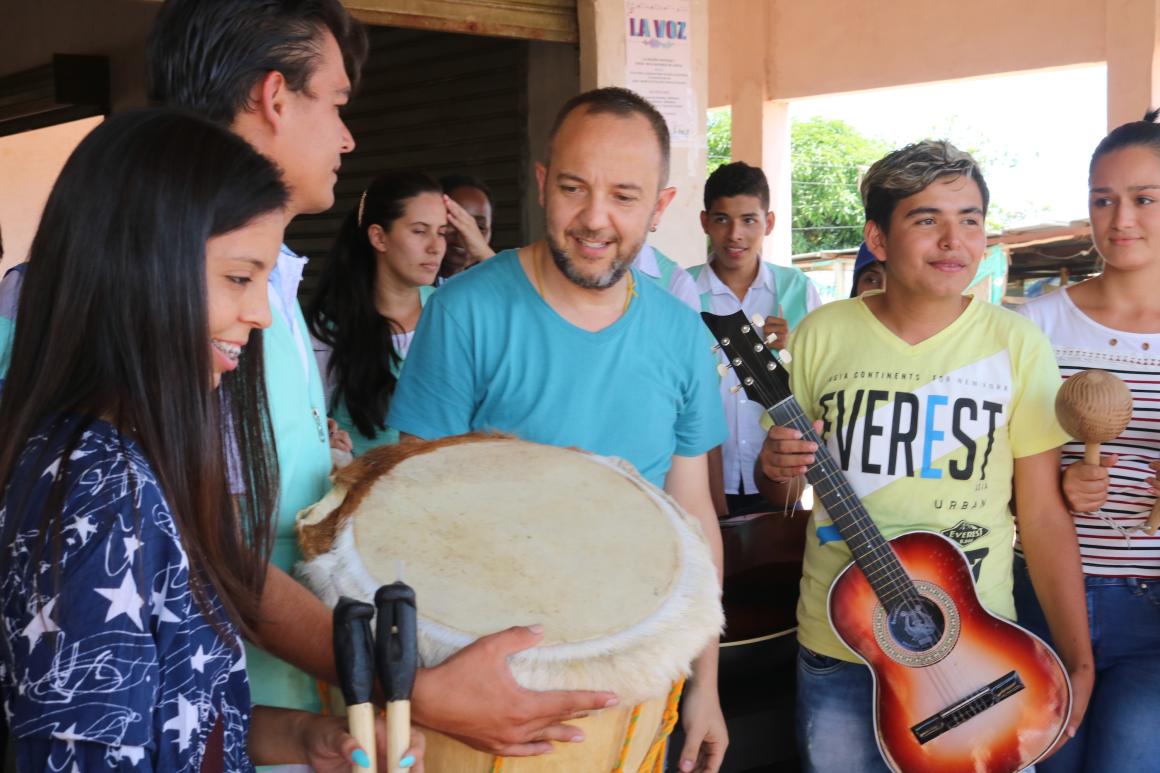 The presentation of the project before the artists, in which Obet and Carlos Andres spoke, was only one of the events where these young people formally launched their project. They also held a workshop 'Art as a key for reconciliation and peace' and received the donation of musical instruments by César López, formalized on Friday 5th July, at the headquarters of 'Sounds of Peace' in the local community of San José de Oriente, in La Paz, Cesar.