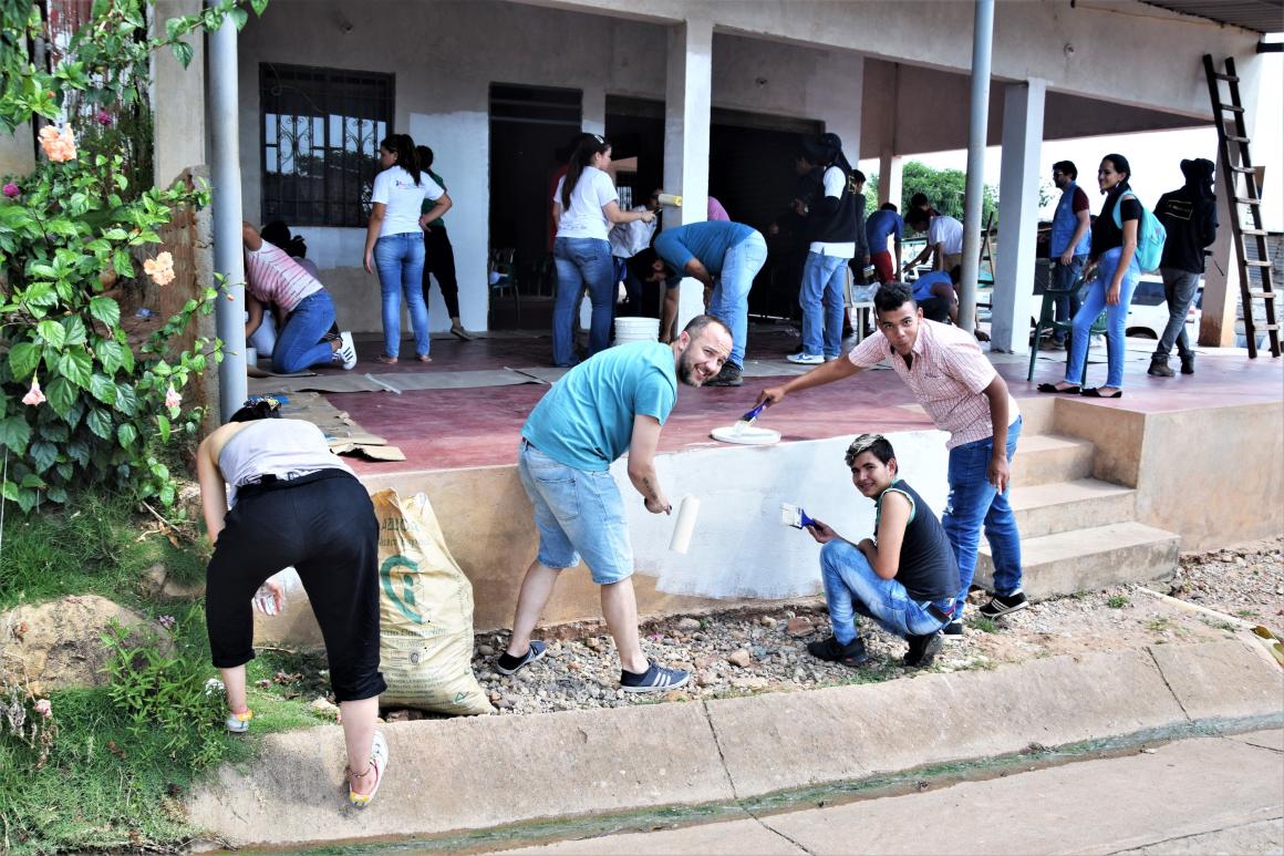 During Friday afternoon, and as the closure of the launch and integration activities among the nearly 50 members of 'Sounds of Peace', work was carried out jointly on the intervention of the frontage of the house where the project is temporarily operating. With rollers and paintbrushes, and to the rhythm of music from the Caribbean coast, the youngsters painted the house of 'Sounds of Peace'. “This house is lent, here lives one of the members of 'Sounds of Peace', but here we have a space to work while we get the necessary support to have our headquarters”, explained Carlos Andrés.