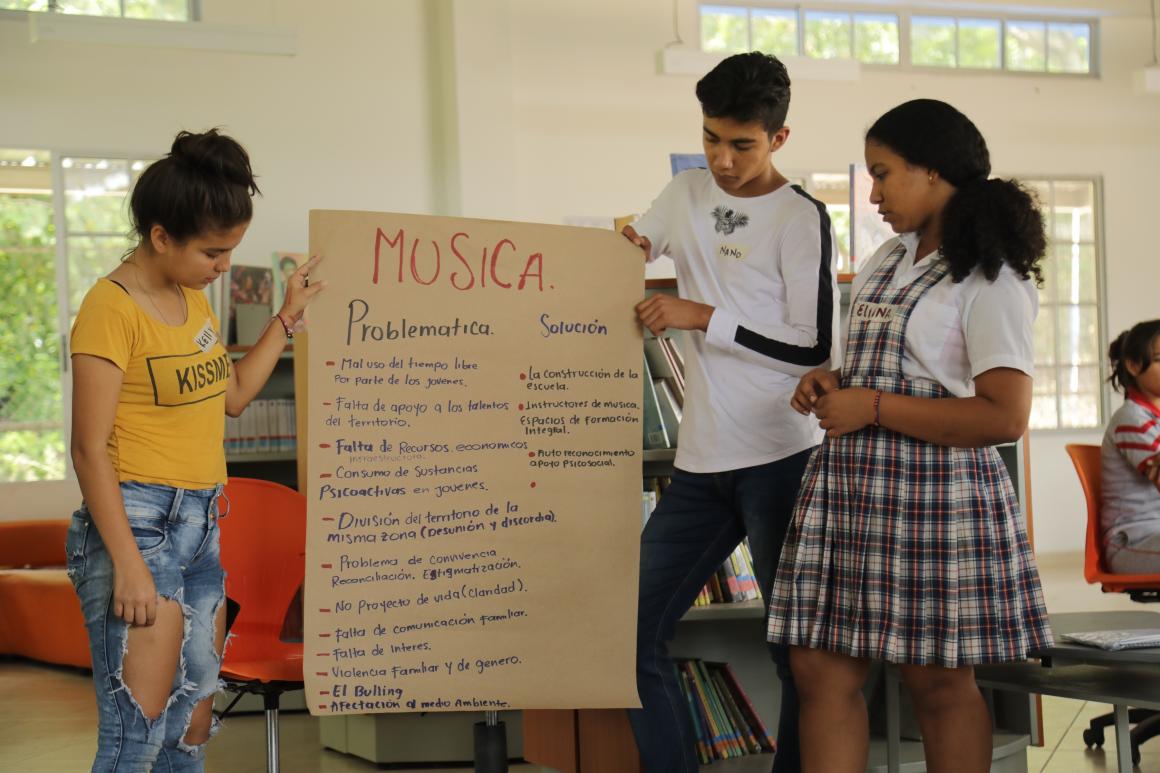 The project, which began to be formulated last year, was completed on Wednesday 15 May during a work session held in Betania’s neighborhood library and was itself an exercise in reconciliation. The young people, between the ages of 14 and 29, worked all day in the elaboration of programs for a school that intends to help the young people to strengthen and/or to construct their project of life, away from violence, and for the rescue of the memory of this region of the country, so many times affected by the armed conflict.