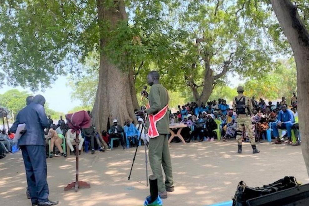 To address growing security concerns among displaced families living in camps in Juba, UNMISS hosted a forum to build trust and strengthen the fragile relationship between residents and national security services.