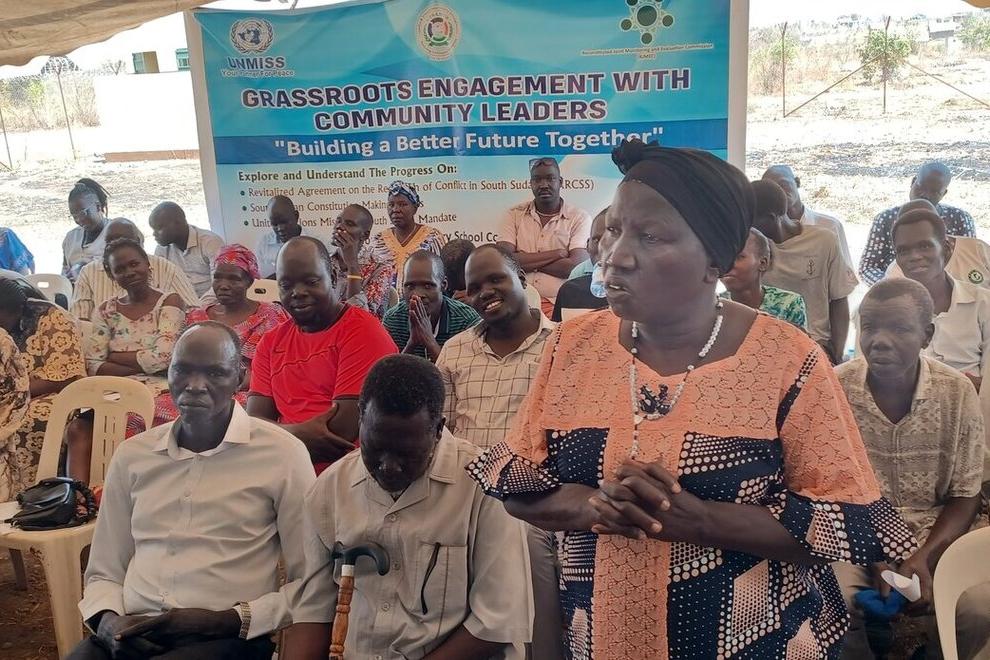 Madelina Dudu Kuje, Chair of the Women’s Union in Kasire, called for peace, stating that South Sudan's children deserve a safe environment to fulfill the potential of themselves and their country. Photo by James Ohisa/UNMISS.