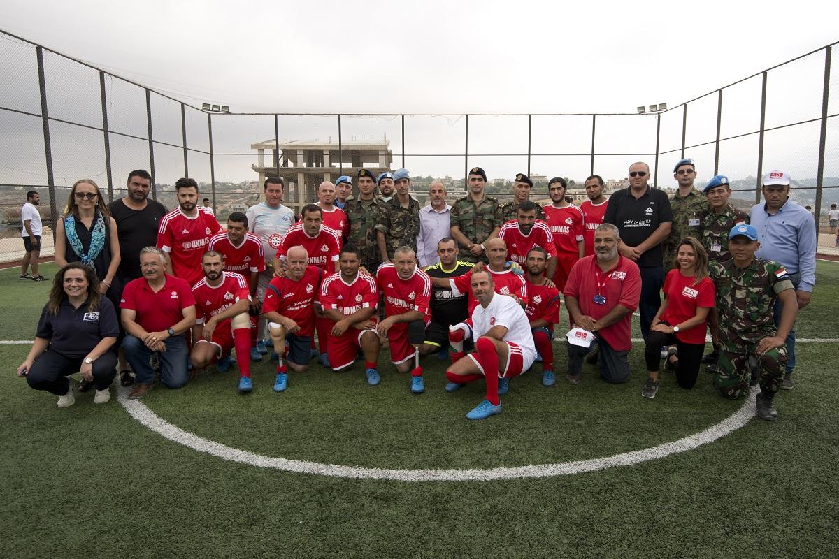 The players from LWAH in a group photo with the MRE coordinators, the Lebanon Mine Action Center (LMAC), supported by the UN Mine Action Service (UNMAS) Lebanon and UNIFIL.