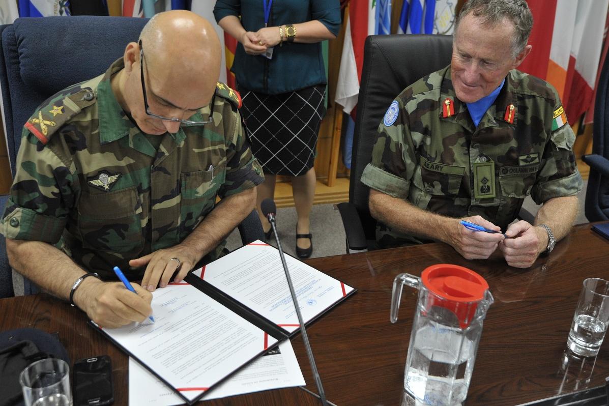 Brigadier General Mohammed Janbay of the Lebanese Armed Forces (LAF) signs a receipt of the equipment donated by UNIFIL.
