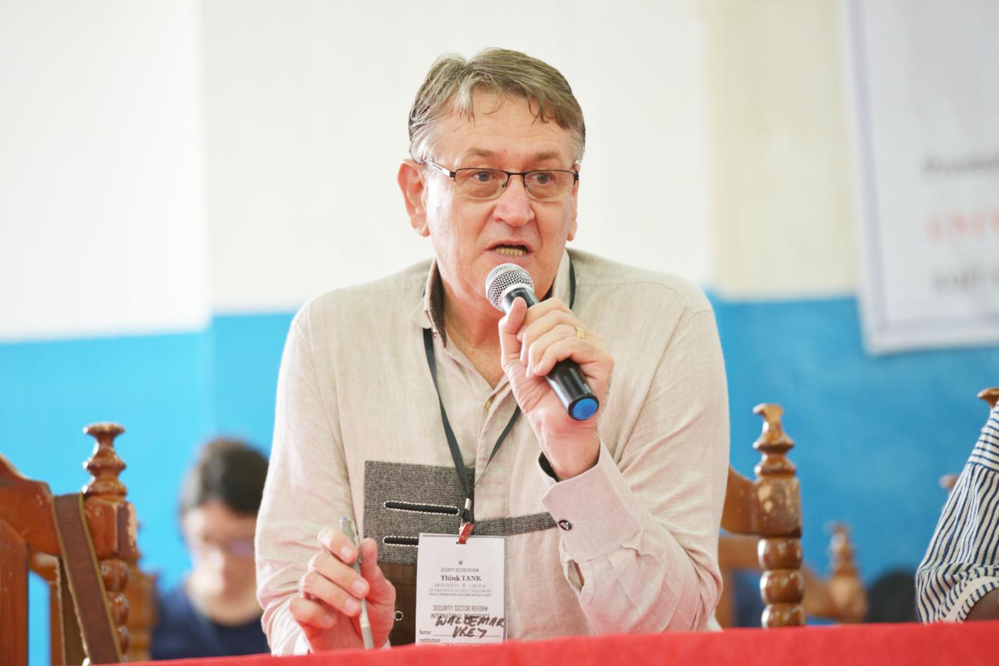 UNMIL Officer-in-Charge, Waldemar Vrey speaks at a two-day international conference on Security Sector Reform at the University of Liberia.