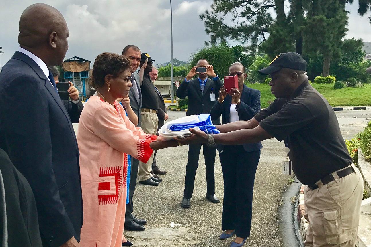 SRSG Mindaoudou receives the UN flag 29 June 2017
