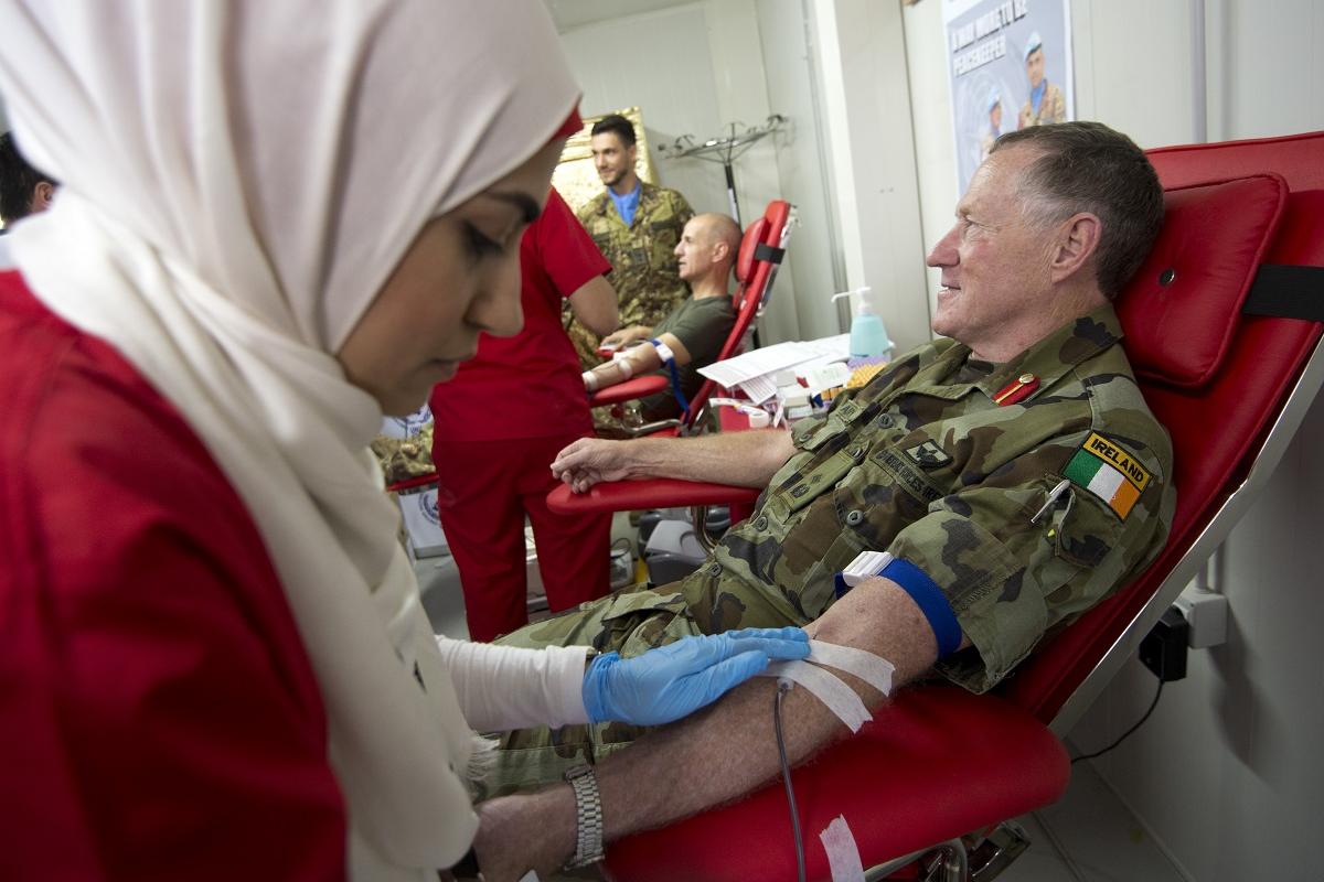 On World Blood Donor Day UNIFIL Chief, Maj Gen Michael Beary donates blood along with Brig Gen Francesco Olla, UNIFIL’s Sector West Commander.