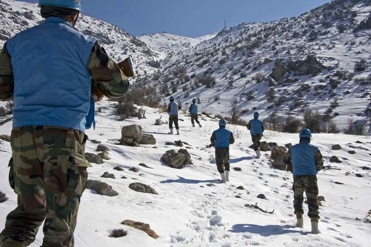 The crunch of snow under foot is a distinct sound. The team of UNIFIL Indian peacekeepers hike their way through the rugged terrain on a patrol near Shab’a. The recent cold snap has left blankets of deep snow, so the patrol…