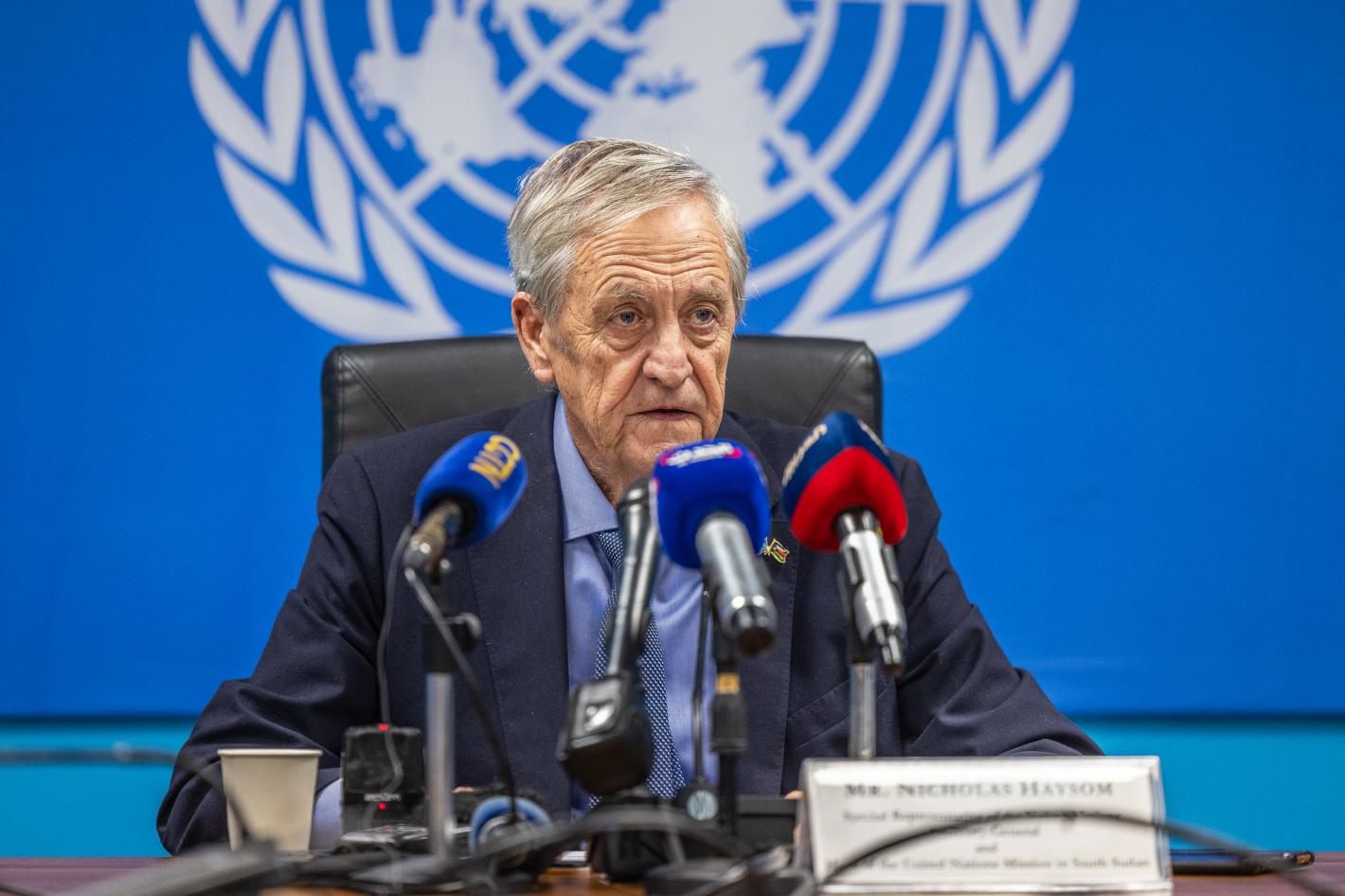 At a press conference in Juba, Mr. Haysom called on the country's leaders to make key political decisions to meet the legal, financial, and technical requirements for the first democratic elections in December 2026. Photo by Isaac Billy/UNMISS.
