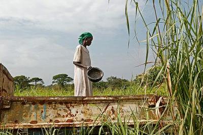 Woman in Mundri, Central Equatoria State, preparing flour in old truck. According to UN agencies, 3.9 million people in South Sudan face dangerous levels of food insecurity. Photo: UNMISS / JC Mcilwaine