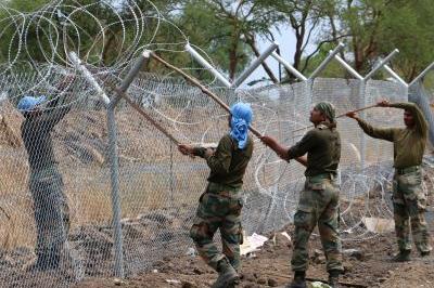 UNMISS staff and peacekeepers outside mosque in Unity State capital Bentiu where more than 200 people were killed on 15 April. Photo: UN/Amanda Weyler