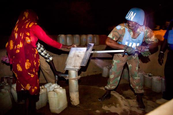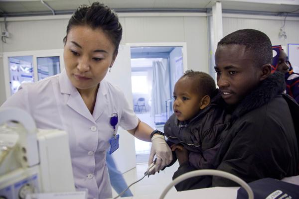 Under Secretary-General for Peacekeeping Herve Ladsous is welcomed by a UNIFIL Nepalese peacekeeper at the start of his Blue Line tour.