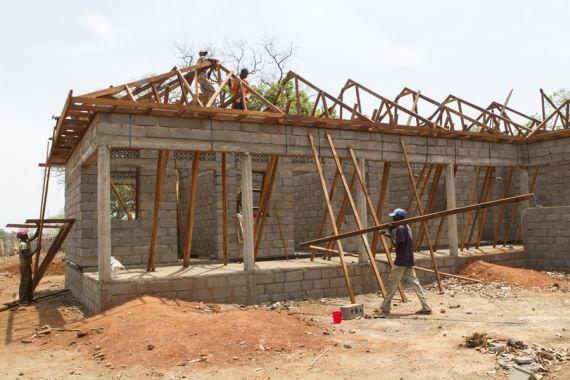 Members of the Mapel community in Western Bahr El-Ghazal, building a detention center as part of the UNMISS DDR reinsertion fund to benefit the community. Photo UNMISS/Martine Perret. Click for larger image.