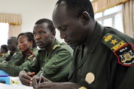 17 September 2012 - Sudan People's Liberation Army (SPLA) judge advocates and military investigation officers attending six-day UNMISS training on human rights in administration of military justice, which began today.