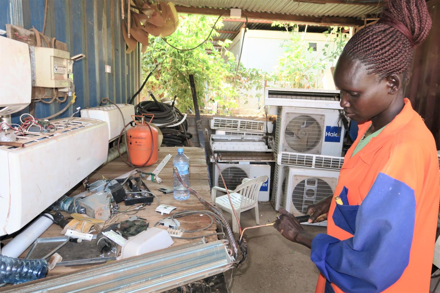 Margaret Othow, an electrician working with UNMISS in Malakal, speaks about being the only woman in her team and choosing to train in what is considered an unusual profession for women in South Sudan. Photo by Samson Liberty/UNMISS
