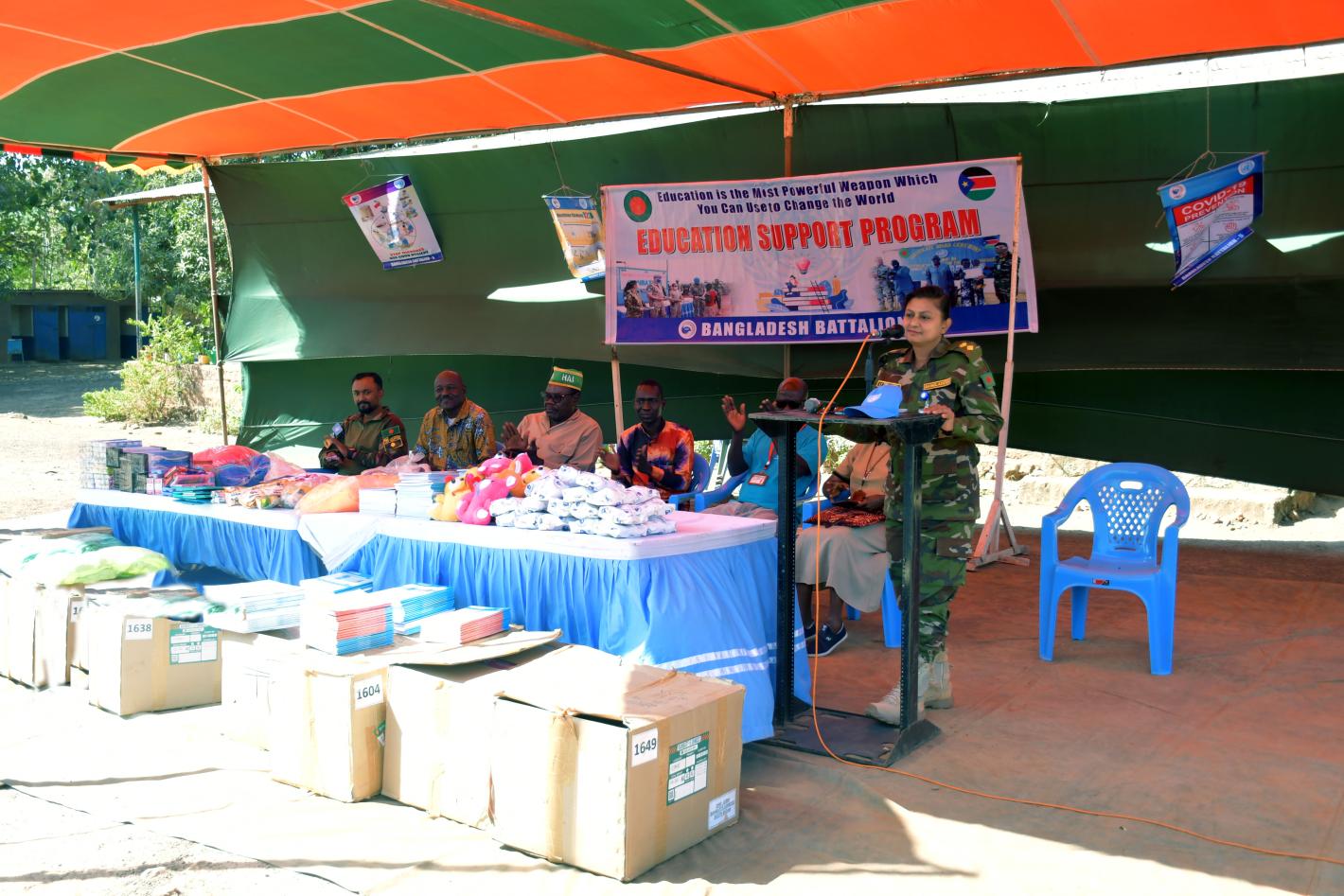 Bangladeshi peacekeepers serving with UNMISS in Wau, South Sudan, recently handed over 1,000 text books and sports items to schoolchildren. Their objective: To motivate students and ensure that they complete their education. Photo by Jimmy Ludanga/UNMISS