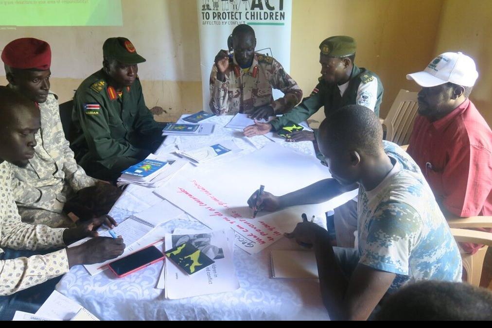 Some 30 senior officers of the Sudan's People Liberation Army-in Opposition participated in an interactive workshop facilitated by UNMISS on protecting and upholding the rights of children. Photo by Okello James/UNMISS.