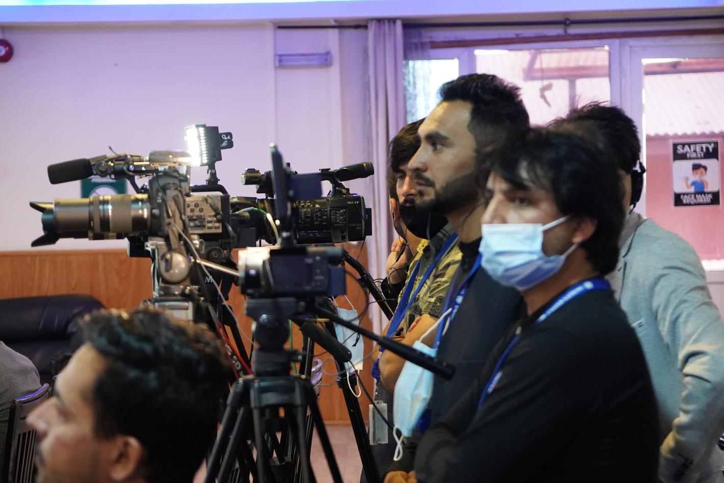 Afghan journalists and media advocates joined UNAMA and UNESCO in marking World Press Freedom Day in Kabul on 30 April 2022. (UN Photo / Richard Wolf)