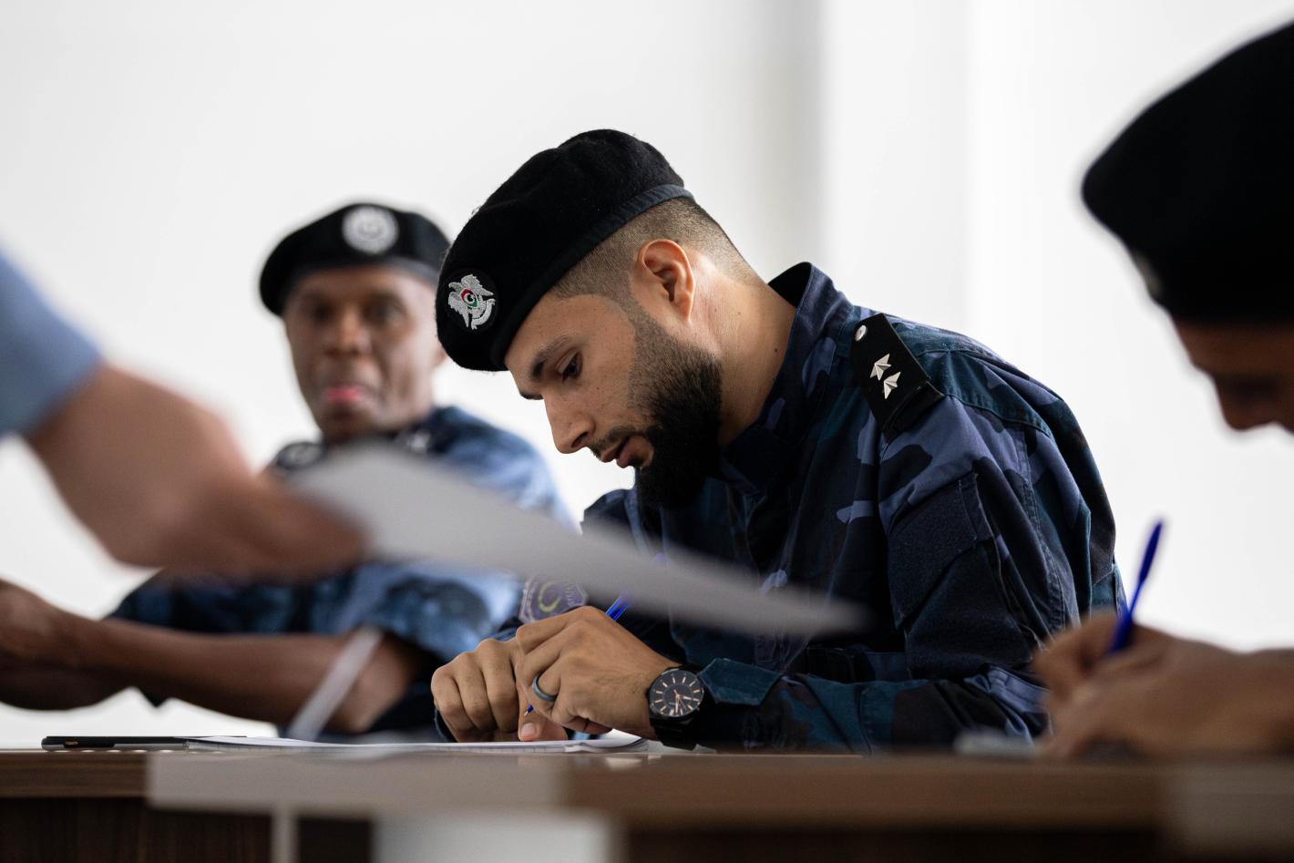 An instructor from the mine action service (UNMAS) component of the United Nations Support Mission in Libya delivers an ammunition management course to officers from Libya's General Administration of Central Support in September 2025. (UNSMIL / Elizabeth Stuart)