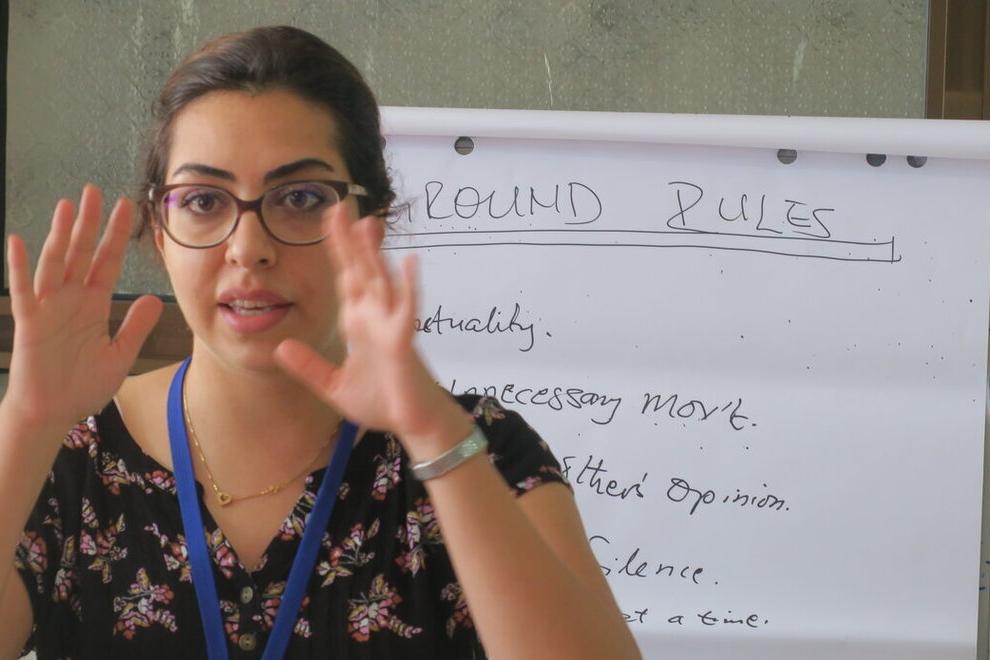 Twenty women from two counties in Western Equatoria come together to discuss issues related to women's protection, human rights and the role played by UNMISS as well as local law enforcement in establishing a durable peace. Photo by Denis Louro/UNMISS.