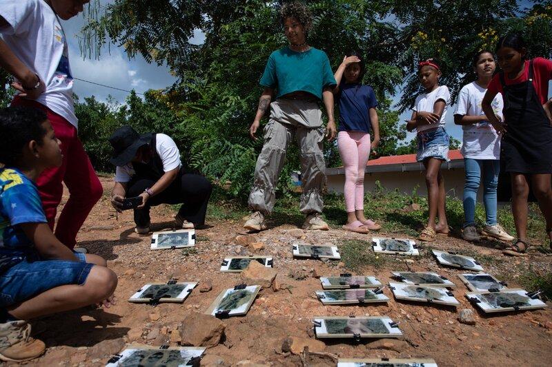 In Manaure, Cesar, about 1,700 kilometres away, in northern Colombia, Lionel Rueda, 10, runs around a small classroom, just like his namesake, Messi. Instead of kicking a football, he is holding a camera and trying to take photos of his friends. He keeps running until Shaira, his 12-year-old cousin, asks him to stay still so she can listen to the class. Shaira is learning chlorophyll printing, the art of printing photos on tree leaves.
