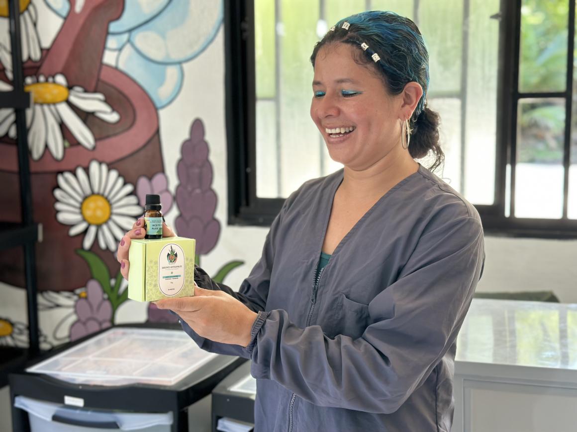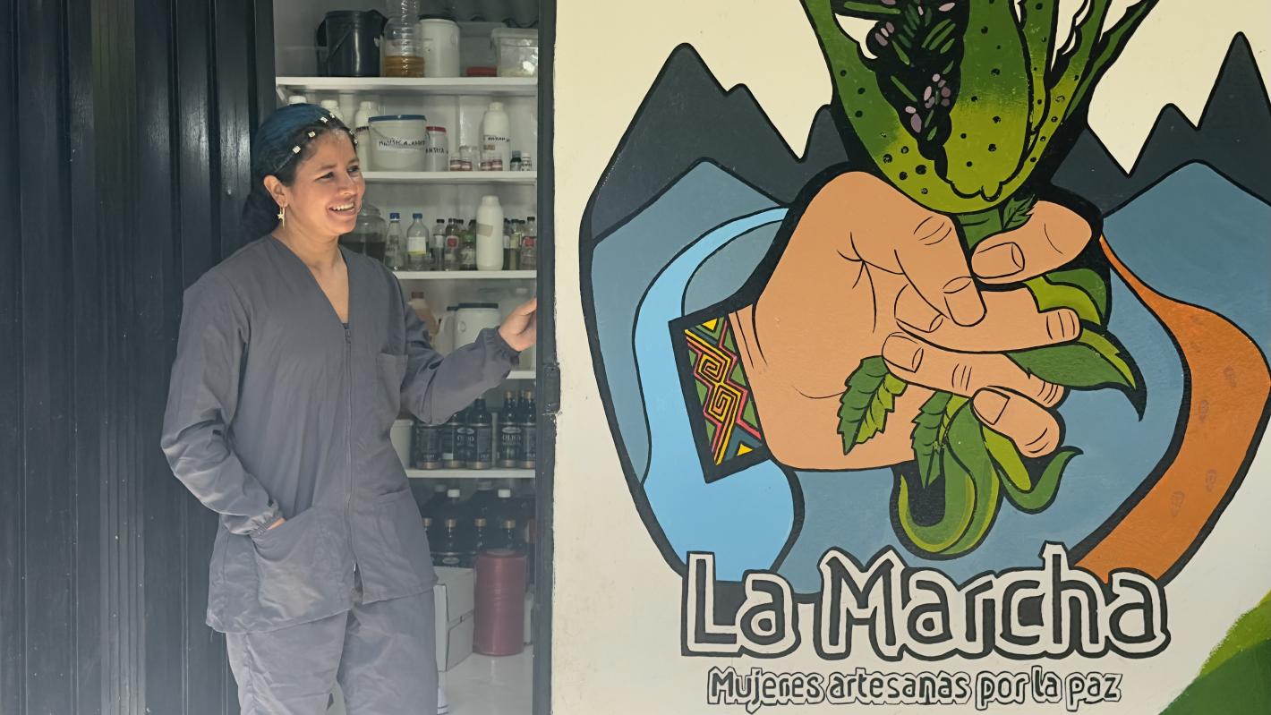 “Somos un colectivo de mujeres firmantes de paz, artesanas, la mayoría madres, y estamos involucrando a la comunidad, en especial a las compañeras indígenas de la vereda Choromandó, en el Cañón de La Llorona. Antes, manejábamos solamente los jabones de lavar y de baño. Ahora, tenemos 17 líneas: contamos con crema corporal, champú y acondicionador sólidos. También estamos trabajando el producto de “mentiplantas” y la ventaja más grande es que nosotras mismas cultivamos”, agrega Doris Higuita, una de las fundadoras del proyecto.