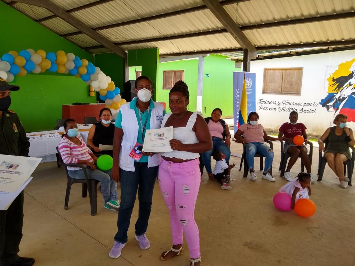 Y en el antiguo ETCR La Variante, en zona rural de Tumaco, cerca de 20 lideresas de la zona urbana del municipio, la vereda y el antiguo ETCR recibieron un reconocimiento a su trabajo por las comunidades en un acto que tuvo como lema ‘Mujer por la paz y los derechos’. La Alcaldía de Tumaco, la ARN, la Policía, el Ejército, la Alianza por la Solidaridad, la OIM, la junta directiva del antiguo ETCR y la Misión de Verificación de la ONU, unieron esfuerzos para realizar una actividad en la que, además de reflexionar acerca de los cambios que han tenido los roles de las mujeres en la comunidad, se hizo reconocimiento público de los liderazgos femeninos y su aporte a la construcción de paz y gestión del desarrollo. Así mismo, se llevó a cabo un torneo de fútbol en el que las mujeres participantes dieron ejemplo de juego limpio y convivencia.
