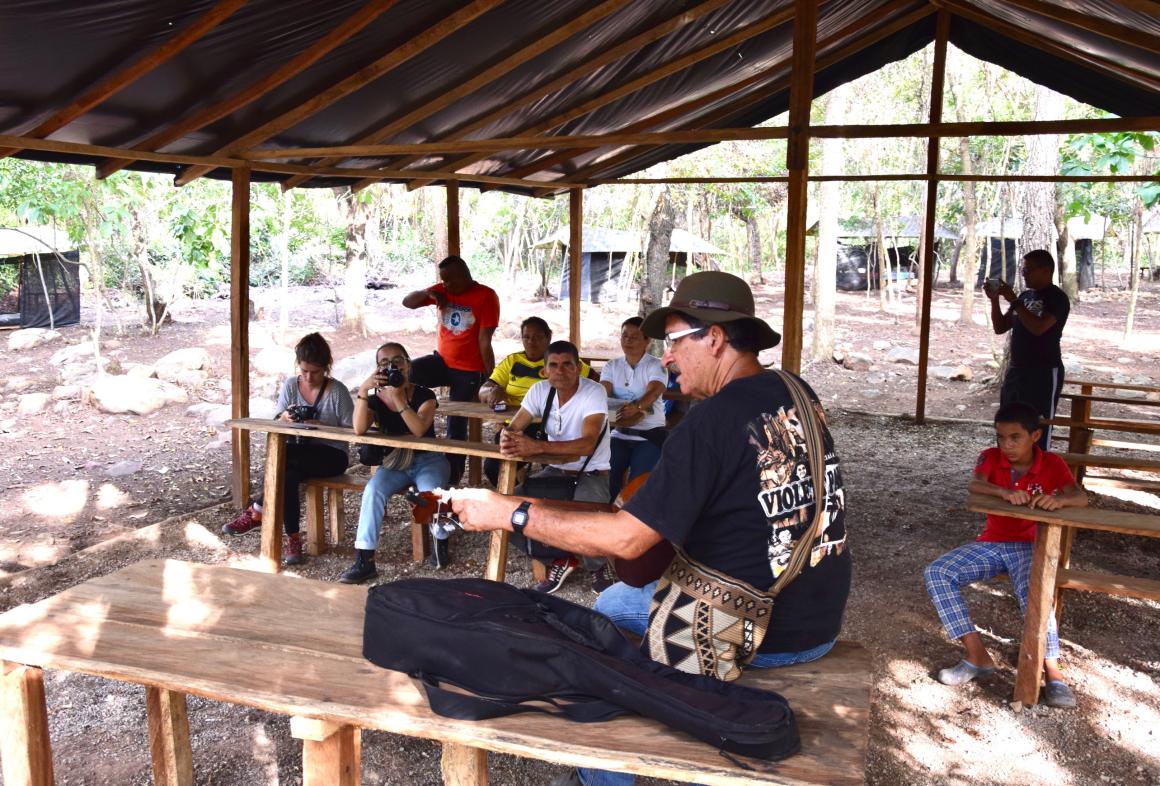 Caía una tormenta y la lluvia y el viento amenazaban con levantar los cambuches. Debía ser la una de la madrugada y la única luz que se veía era la de una lámpara de ACPM que tenía un excombatiente de Farc que estaba acostado en una hamaca en el centro del campamento. Los turistas extranjeros (dos belgas y un francés) estaban en sus caletas, despiertos, alistándose para dormir. Estaban en medio de la selva en un punto entre La Paz y Manaure, Cesar, adonde habían llegado para conocer cómo se está dando el proceso de reincorporación de las Farc.