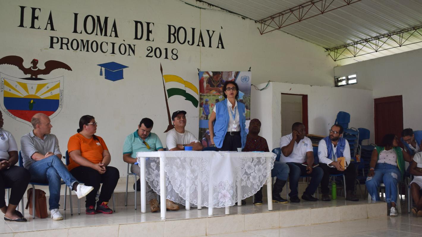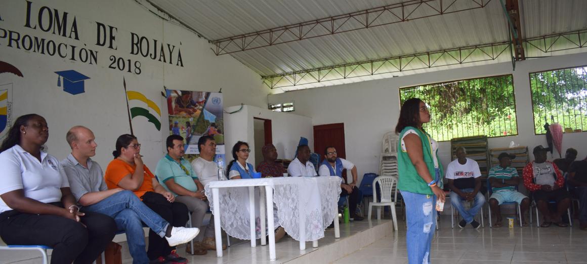 Así cerraba Eimy Allín, directiva de la zona 8 de COCOMACIA, un acto de reconciliación con enfoque étnico y comunitario entre los Consejos Comunitarios del río Bojayá, y los excombatientes que realizan su reincorporación en la zona. El evento, que tuvo lugar en la Loma de Bojayá el 12 de noviembre, estuvo impulsado por la oficina de la Misión de Verificación de la ONU en Quibdó, por la oficina en Colombia de la Alta Comisionada de la ONU para los Derechos Humanos (OACNUDH), y por la Comisión Interétnica para la Verdad del Pacífico (CIVP).