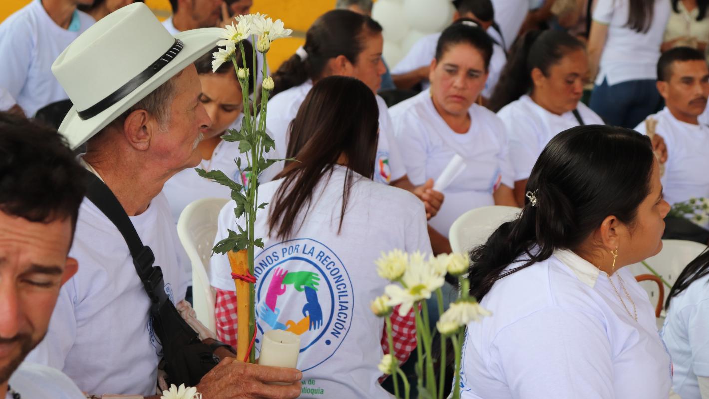 “Reconciliarnos es que jamás tengamos que repetir el dolor que ya vivimos y que en adelante le apostemos a un futuro mejor y no queramos tomar venganza —dijo Gabriel Monsalve, víctima del conflicto—. Fui desplazado 2 veces, la primera en 2008 y la segunda en 2012. Perdí mucha gente que quería, mis sobrinos, amigos. La guerra nos hizo vivir muy solos”.