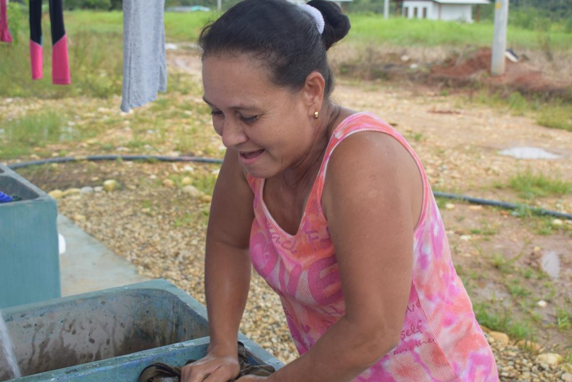 Con esa amabilidad me recibió en su casa Teresa Agudelo, o doña Tere como le dicen en el Espacio Territorial de Reincorporación y Capacitación (ETCR) de Playa Rica en La Macarena, Meta en donde vive desde el año pasado cuando se reencontró con su hija después de 16 años de no saber nada de ella. Doña Teresa, con alegría y nostalgia, cuenta cómo fue el reencuentro con su hija y cómo es su vida ahora que lidera un pequeño taller de confección en el ETCR que espera que sirva como proyecto productivo para las y los excombatientes que hacen su proceso de reincorporación en esta región del país.