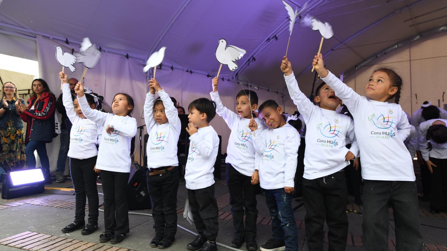 Entre tanto, en la capital colombiana, Bogotá, la Misión de Verificación de la ONU y las agencias, fondos y programas de la ONU en Colombia se unieron a la Alcaldía Mayor para celebrar esta fecha con un concierto la plaza de Bolívar en el centro de la ciudad a cargo del “Coro Hijas e Hijos de la Paz”, integrado por 50 menores de edad, la mayoría de ellos son hijos de firmantes del Acuerdo de Paz que con apoyo de la Fundación Ford y la Misión de la ONU hacen parte del Programa de Formación Musical de la Orquesta Filarmónica de Bogotá.