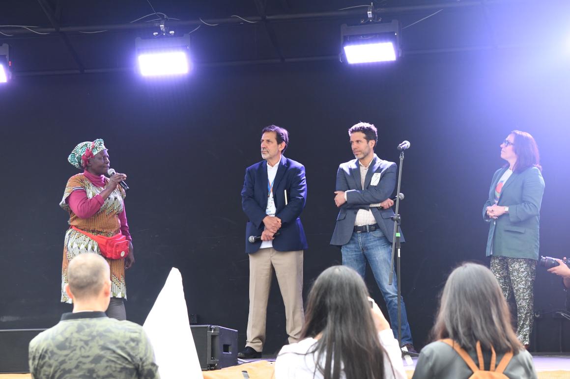 Además del concierto, en la Plaza de Bolívar se instaló una feria de emprendimientos de víctimas del conflicto armado y de personas en proceso de reincorporación, y se hizo el “arropamiento” del Palacio de Justicia con telas bordadas por decenas de personas a lo largo del territorio nacional y en 24 países de Latinoamérica y Europa, un movimiento comunitario liderado por la lideresa afro Virgelina Chará.