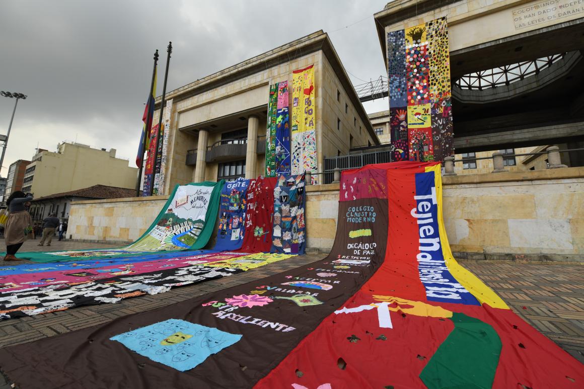 Por su parte, Diego Peña, director de reparación de la Alta Consejería De Paz, Víctimas Y Reconciliación de la Alcaldía Mayor de Bogotá destacó la actividad del arropamiento: "Colombia es un ejemplo para el mundo y Bogotá quiere ser un ejemplo para el país. Estos telares, que llevan construyéndose más de 10 años, son una iniciativa ciudadana y nosotros apoyamos estas expresiones".