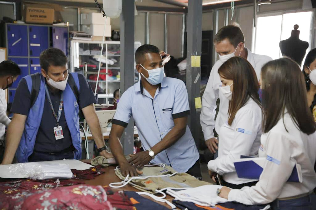 “Estamos muy impresionados por el trabajo que descubrimos hoy, el trabajo de reuso de nuestros uniformes transformados, un trabajo fino, muy lindo, que supera las expectativas nuestras”, dijo Le Miere, quien además resaltó el “gran ejemplo de inclusión, de trabajo en conjunto entre agencias internacionales, gente local, sector privado y entidades nacionales en este espacio”.