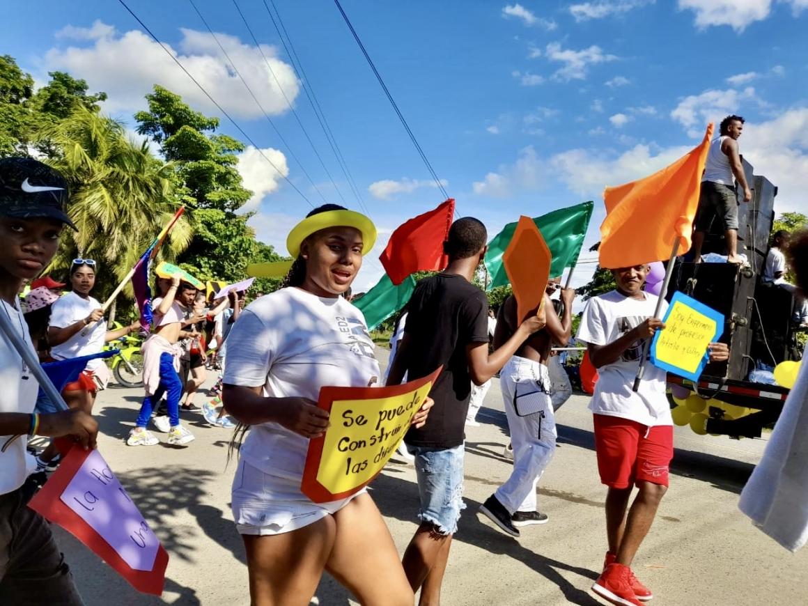 El pasado junio, la Misión de Verificación de las Naciones Unidas en Colombia apoyó la conmemoración del Día del Orgullo en el municipio de Turbo, en el Urabá antioqueño. Integrantes de la comunidad LGTBIQ+ desfilaron por sus calles, llevando carteles con mensajes alusivos a los derechos de esta población, banderas arcoíris, vestidos de fantasías con tocados de colores.