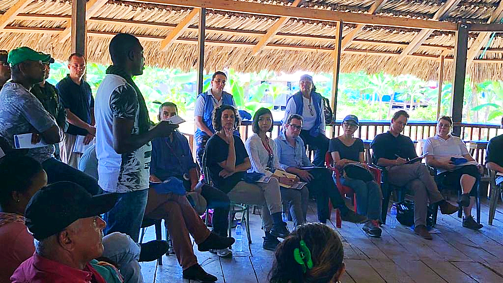 Un equipo de la Misión de Verificación de la ONU en Colombia presente en la zona del Darién chocoano acompañó al grupo para reunirse con líderes del ETCR y de las comunidades aledañas. Los socios del PBF y demás personas presentes escucharon con atención las preocupaciones de los excombatientes, también sus logros, historias de transformación y esperanza en el proceso.