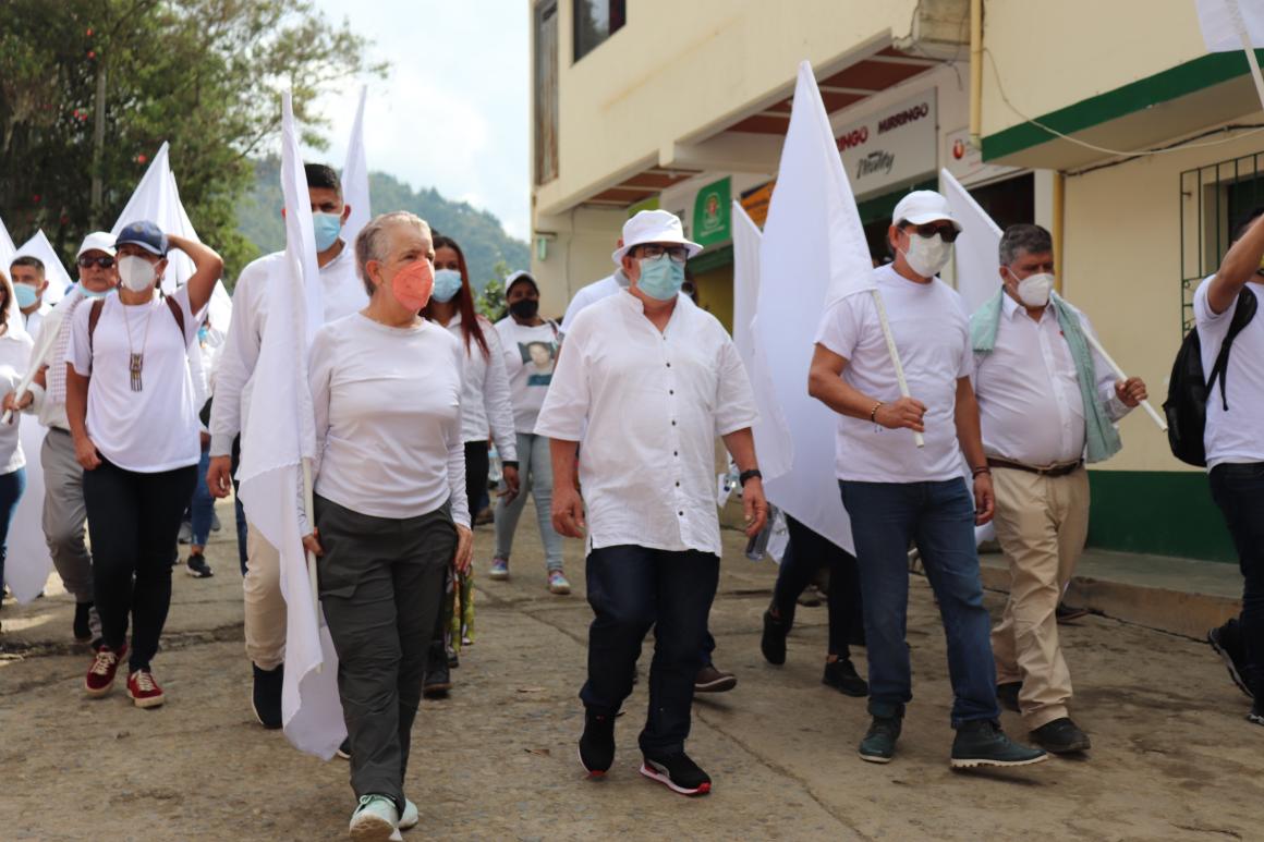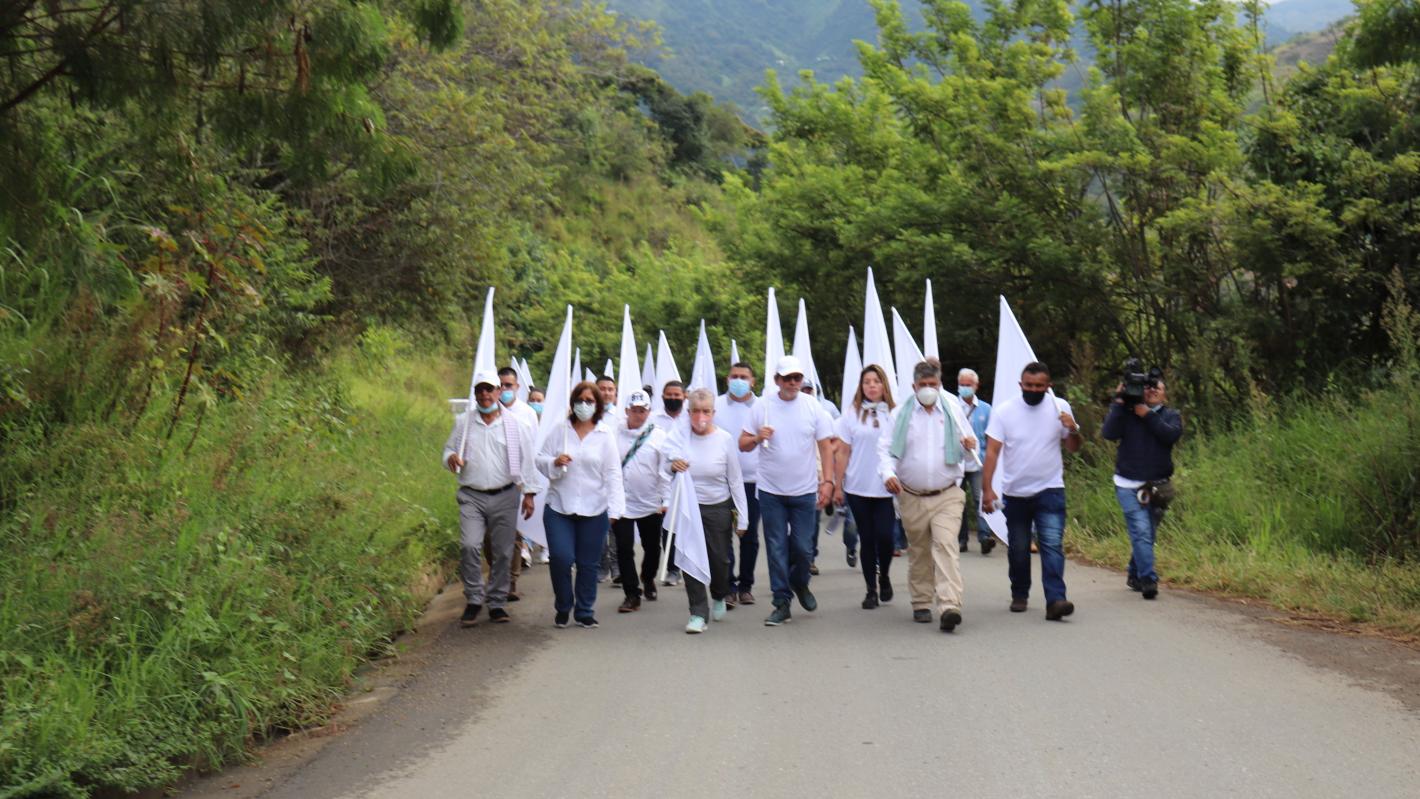 Víctimas, excombatientes y comunidad de Caicedo, Antioquia, se escucharon y dialogaron sobre los hechos ocurridos en este municipio y participaron juntos de una marcha con banderas blancas, en el mismo puente donde ocurrió el hecho 2 décadas atrás.
