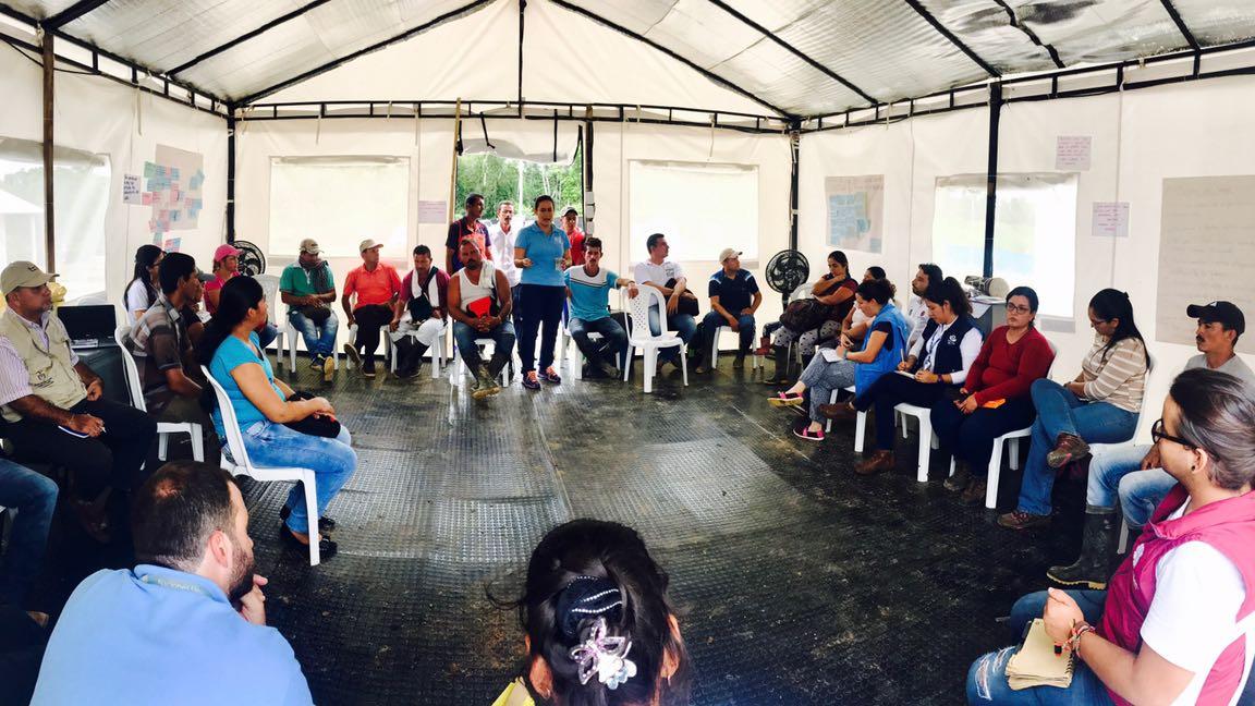 Habitantes veredales de Caño Indio, en el municipio de Tibú, en Norte de Santander, donde está ubicado uno de los 26 Espacios Territoriales para la Capacitación y la Reincorporación (ETCR), excombatientes, organizaciones sociales y asociaciones productivas se reunieron para compartir una jornada de reflexiòn sobre la paz y trabajar juntos para la resolución dialogada y concertada de conflictos.